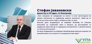 Интервју со Стефан Јовановски, ЧР Директор на А1 Македонија, за неговата улога на предавач и ментор … Продолжи со читање Академијата за Employer Branding на ВИТА ИНСТИТУТ нуди можности за брзо и ефективно доквалификување на ЧР професионалците