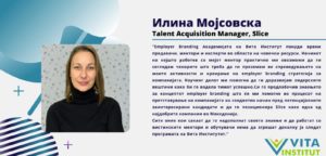Интервју со Илина Мојсовска, талент менаџер во Slice, за нејзиното искуство од учеството на Академијата за … Продолжи со читање Значајна придобивка од Академијата за Employer Branding на ВИТА ИНСТИТУТ е употребливата вредност на знаењето со кое се стекнав