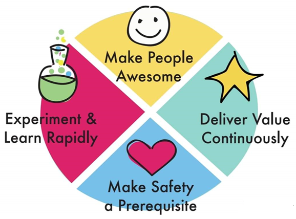 Целта им била да бидат во поблиски односи со крајните корисници, т.е. да им дадат вредност во брзи и кратки интервали, наместо во недогледни рокови како што беше претходно, и сето тоа без мониторинг на менаџментот, т.е. работејќи во мали мулти функционални и автономни тимови.