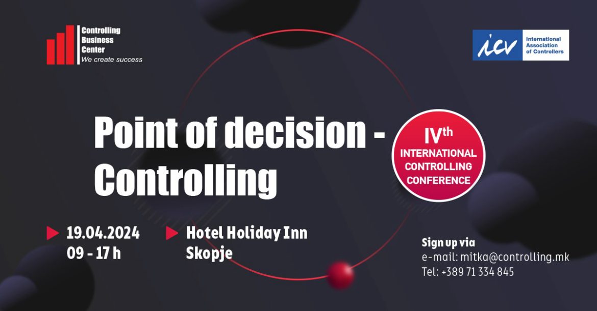 Под покровителство на Меѓународното здружение на контролери (ICV- International Controller Verein), консултанската компанија Контролинг Бизнис Центар од Скопје, ја организираат четвртата по ред Меѓународна конференција за контролинг на тема : POINT OF DECISION- Controlling. Темата на конференција е инспирирана од неизбежната функција на контролингот во сите подрачја и области. Сведоци сме дека во последните години контролингот е најчесто дискутирана тема, неговата употреба станува нужност во деловниот свет, се настојува негова имплементација во сите области, едукација на контролери и менаџери на сите хиерархиски нивоа, се со цел да се подобри продуктивноста на самите организации.