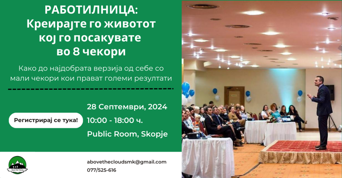 После оваа работилница ќе бидете побогати со конкретни знаења, техники и алатки како да дознаете што сакате и како да го остварите тоа. А, најважното и најубавото е тоа каков човек станувате додека го одите патот.
