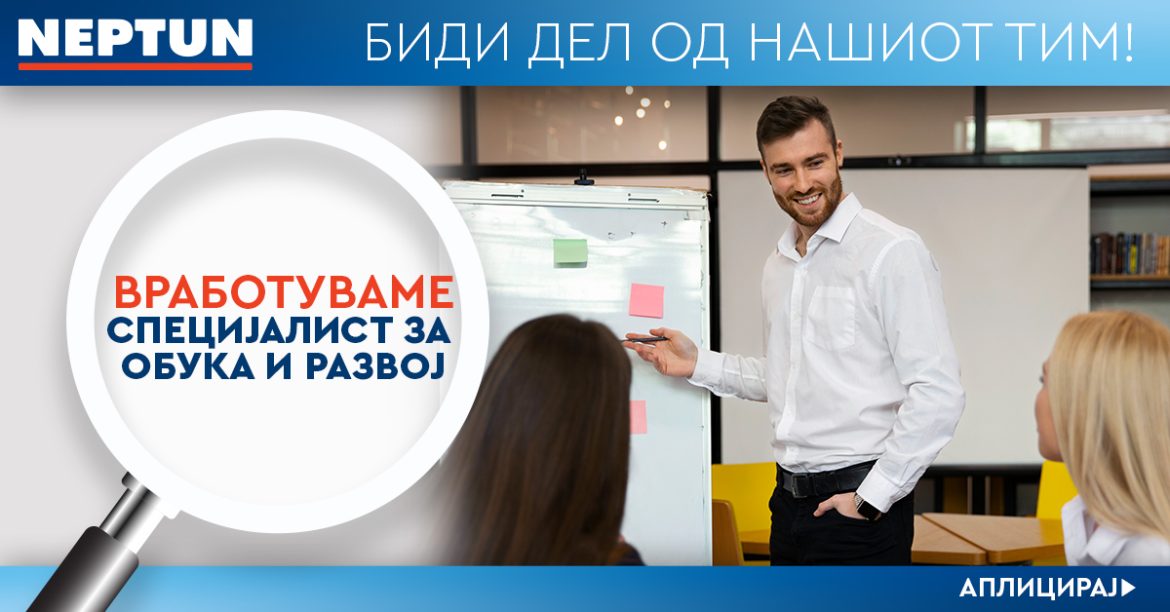 Како дел од BALFIN Group, Нептун Македонија постојано инвестира во развојот на своите вработени, градејќи знаења, вештини и потенцијал неопходни за одржлив раст и високи перформанси. Во таа насока, го зајакнуваме нашиот тим и објавуваме оглас за работно место: