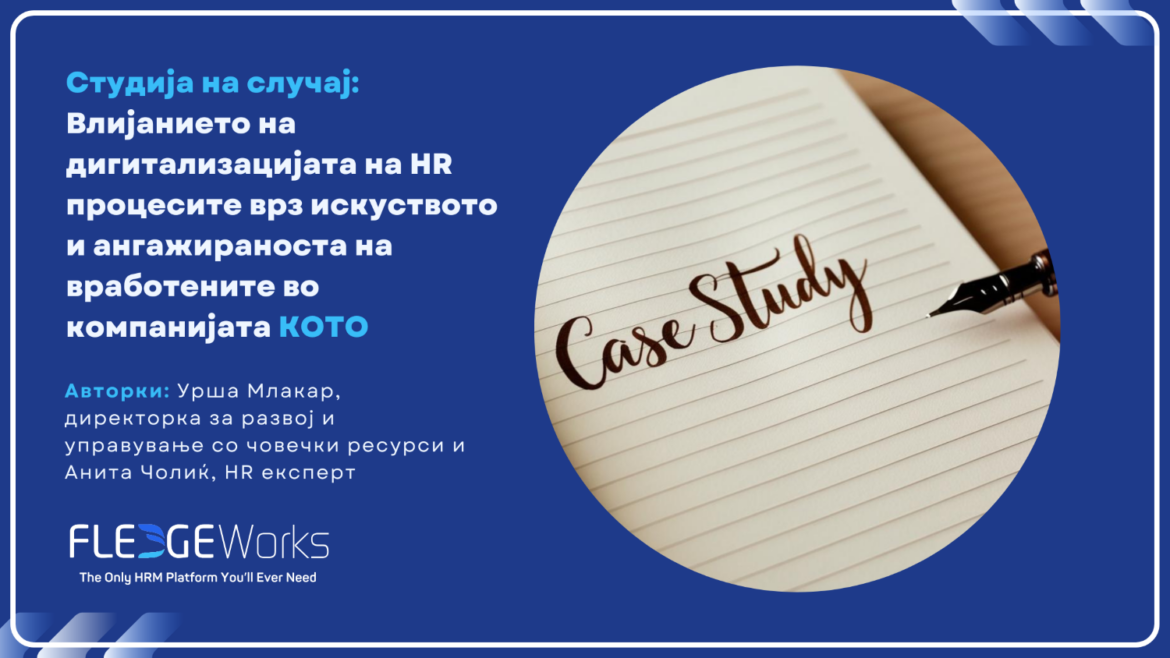 За ефективно поддржување на секој од овие процеси, како и на основната HR администрација, во 2022 година одлучивме да ги дигитализираме HR процесите преку HRM платформата FledgeWorks. Бевме свесни дека начинот на кој се спроведуваат овие процеси има силно влијание врз доброто искуство на вработените. Еден од главните фокуси на дигиталната трансформација на HR процесите во KOTO беше управувањето со искуството на вработените. Нашата цел беше технологијата да ги поддржи сите HR процеси, бидејќи тие се тесно поврзани со секоја фаза од искуството на вработениот – да ги направи процесите лесни за користење и да овозможи позитивно работно искуство. Со технологијата сакавме да ја забрзаме и олесниме работата, да обезбедиме непречена комуникација, пристап до податоци и информации од каде било, транспарентност, поттикнување на брз фидбек, овозможување мерење на успех и анализа, следење на потребите на вработените и подобрување на работните процеси.